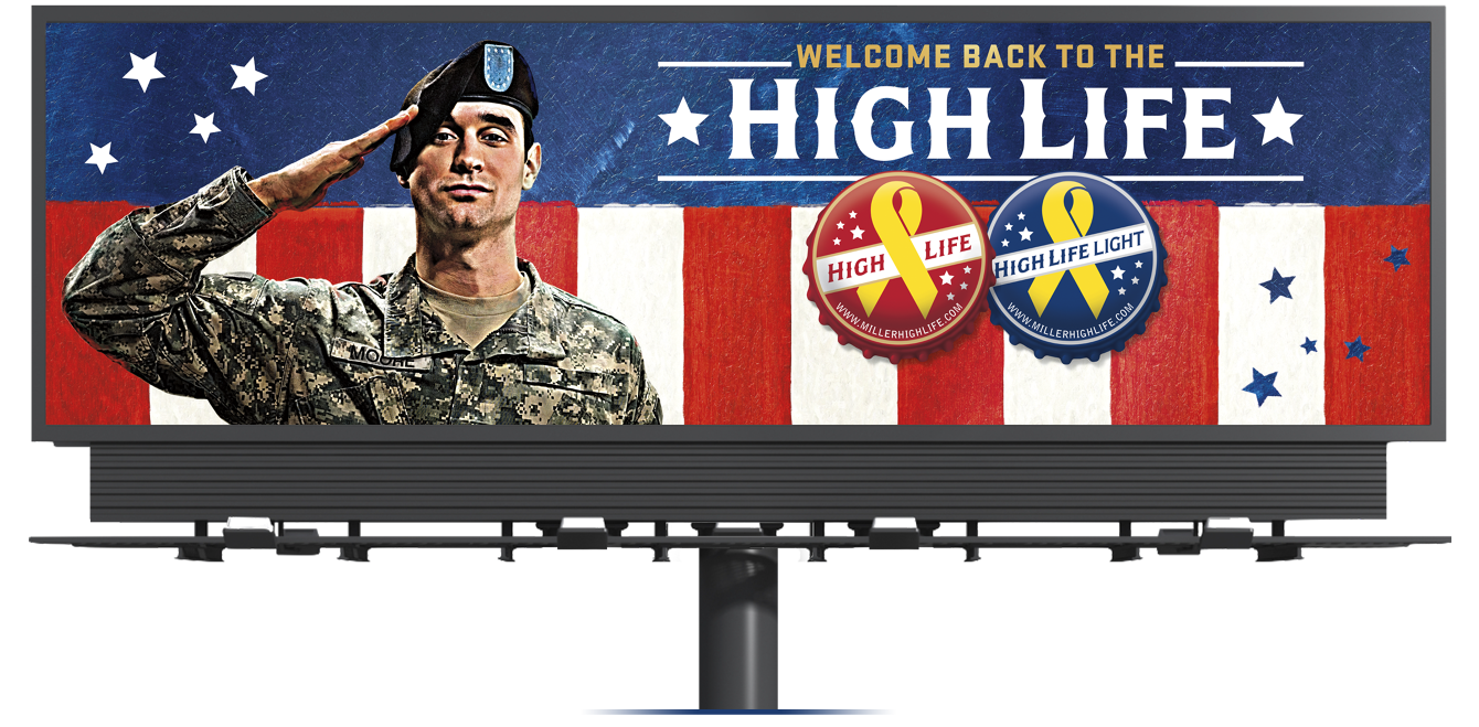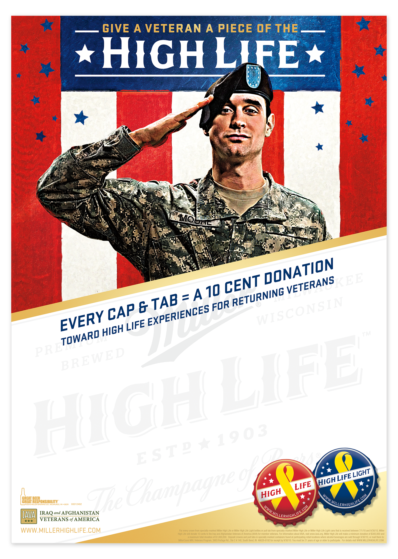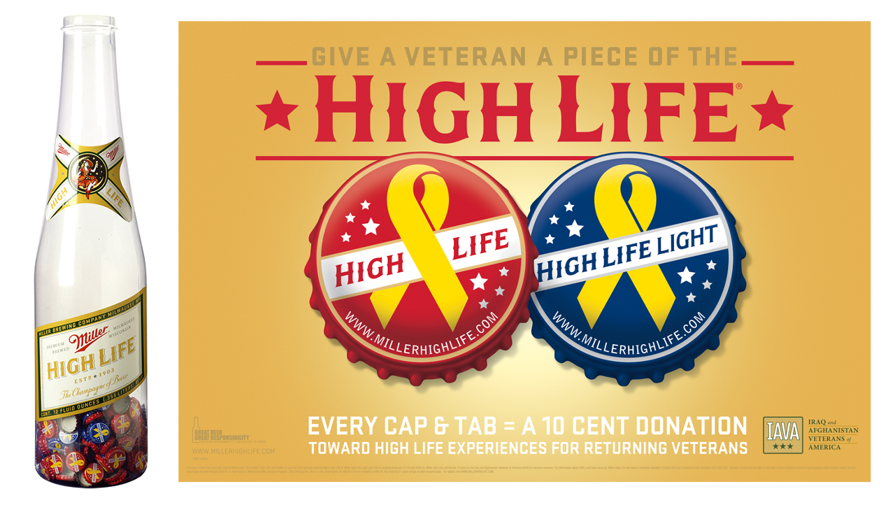 Turn every Miller High Life cap and tab into a symbol of giving back. Each was worth 10¢ toward funding shared American experiences — baseball games, river rafting trips, concerts — for returning veterans and their families.